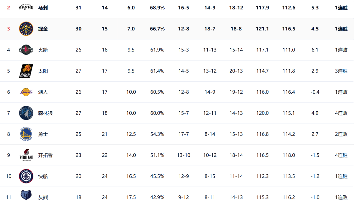 由于西部季后赛位置争夺激烈,即使赛程刚刚过半,都足以见得这些球队的竞争激烈。